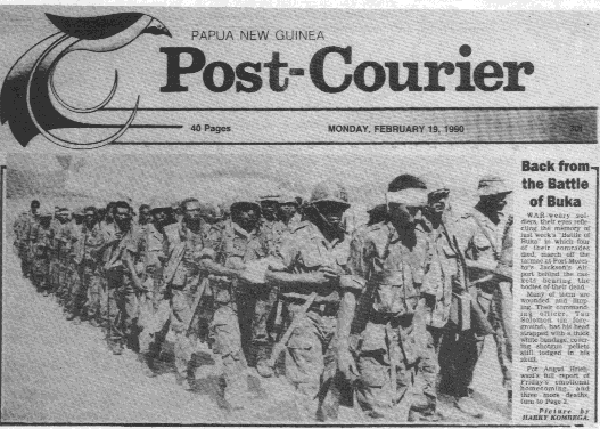 In the so called “Sandline Affair” a group of foreign mercenaries, together with soldiers of the PNG Defence Forces (PNGDF), tried to give a turn-around to the situation. But failed.