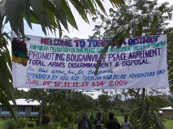 In April 2009 the U.S. Embassy in Port Moresby received a joint request from PNG Prime Minister Somare and AGB President Tanis, seeking U.S. assistance in cleaning up World War II arms and munitions at Torokina, Bougainville. In June 2009 I and several colleagues from the State Department, along with two U.S. military representatives, visited Torokina to make an initial assessment of the situation. We concluded that there was extensive explosive contamination of the Torokina area, mostly in the form of abandoned mortar and artillery shells, but also including some aerial bombs as well as small arms ammunition. In addition there was unexploded ordnance (UXO) that had been fired but failed to detonate. We found that these materials posed an ongoing threat to residents, limited local agricultural expansion, hindered Bougainville’s economic development, and was to some extent still being scavenged to supply arms and munitions to insurgents and criminals. We were shown several examples of rather primitive (though functional) small arms that had been scavenged and put into serviceable condition. We also learned of the role that such arms and ammunition had played during the 1990s conflict.