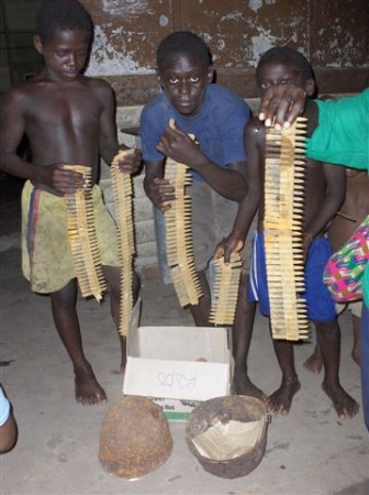 Old small arms ammunition is collected and cleaned by some