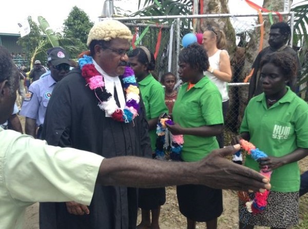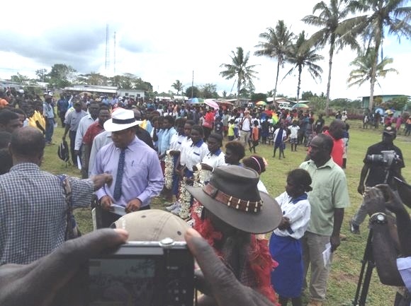Presentation time Bougainville Affairs Minister Steven PIRIKA presenting Ray Paul in Buin this afternoon.