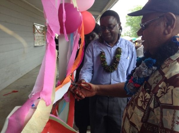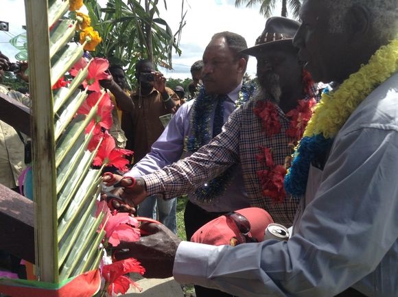 Ribbon of one of the houses us cut by the ABG minister Joel BANAM , PIRIKA and Fred Konga