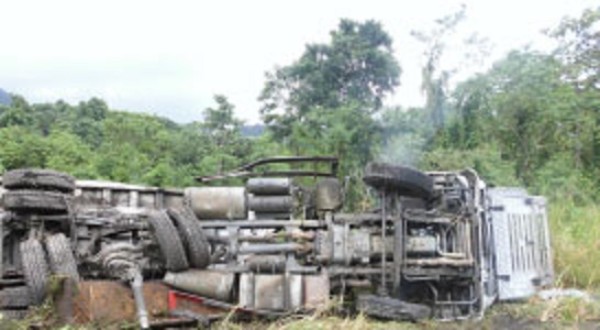 Tragedy struck in Buin on Sunday as an Isuzu freighter plugged into a 40-plus meter ravine below Loruru Bridge.