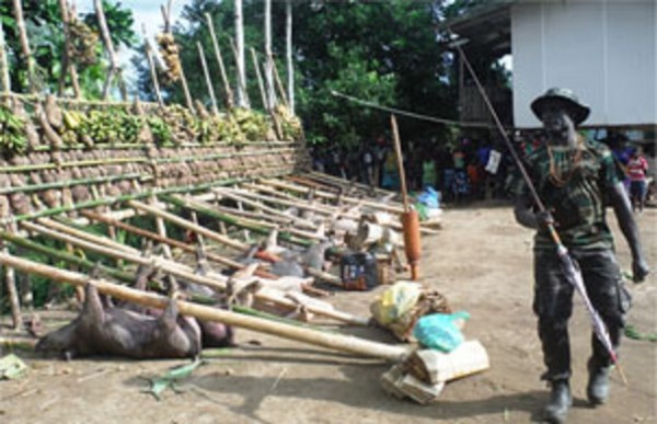 This is the customary ritual known as domangminta by Nasioi people where respect is given to the dead and to cleanse their bloods.