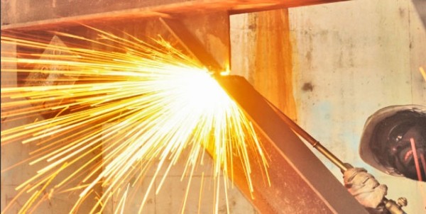 An employee of Panguna Metals cutting up metals using orxy cylinders at Loloho Port as scrap metals for overseas export. Picture: JACOB IENU