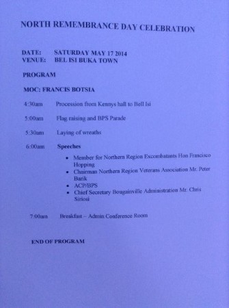 Since then the ABG has recognized it as remembrance day to remember those who died during the Bougainville crisis on both sides of the conflict.